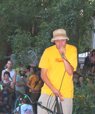 Festivaalin juontaja Javiera taiteilee saippuakuplilla,
